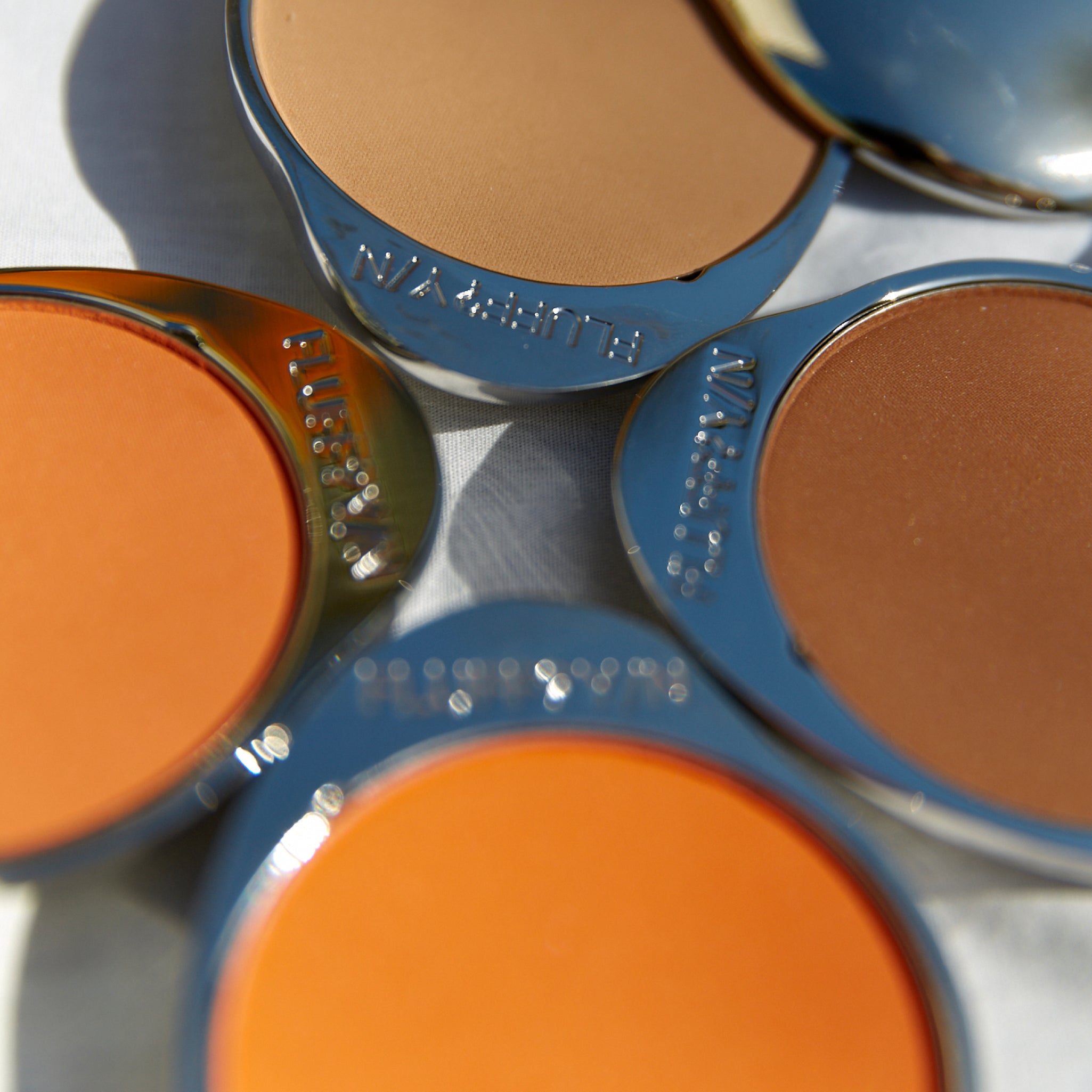 Fluff's Refillable Bronzing Powder is available in four buildable shades, developed with our community.