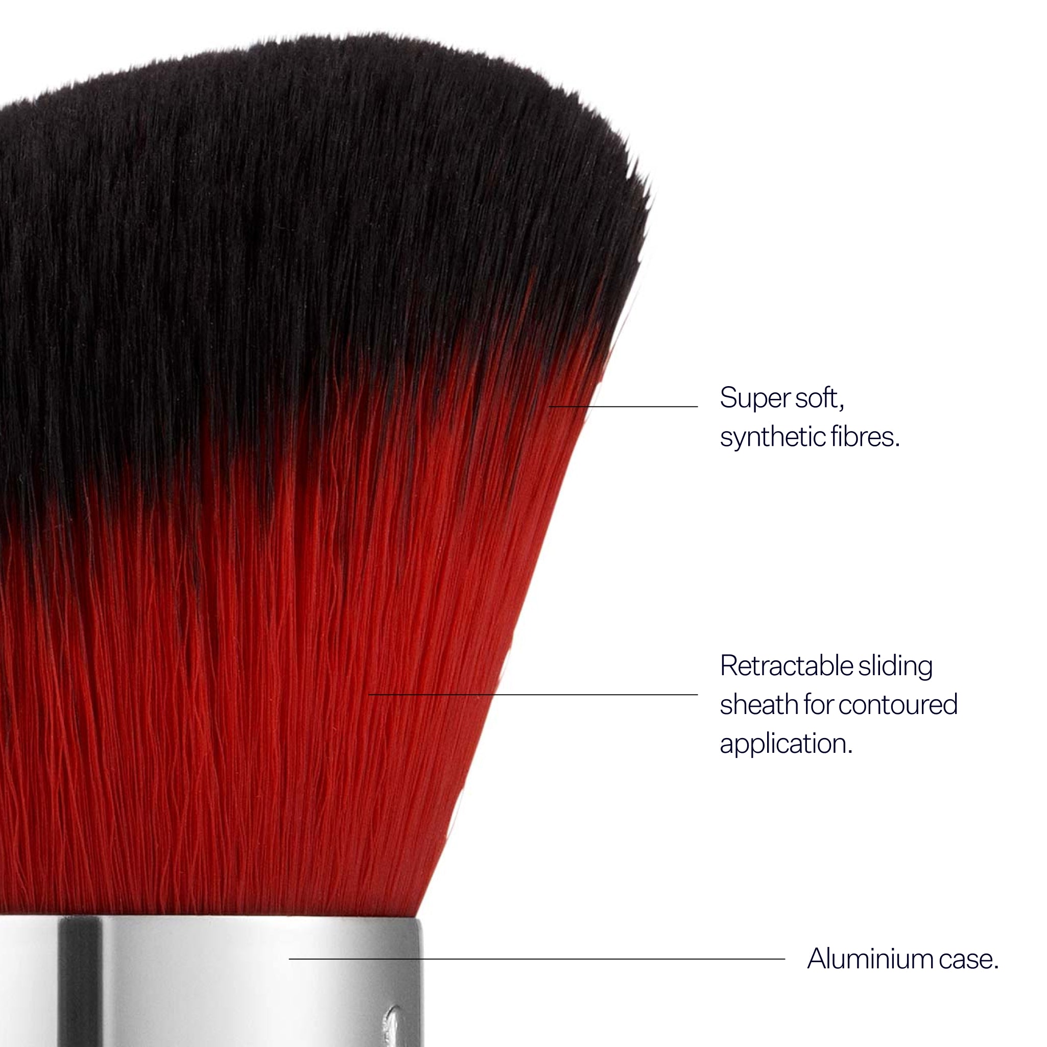 Fluff's Kabuki Brush is perfect for all over powder coverage as well as contouring application. Synthetic fibres, protective lid, retractable sheath.